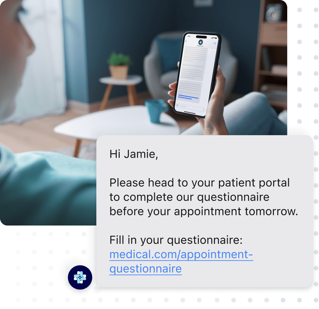 Patients and customers click on a link in text messages, enter their PIN, and view communications and information in a secure mobile web browser on their smartphones or tablets.